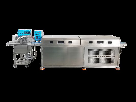 Se integraFormación de mochi, recubrimiento de chocolate, enfriamiento y transporte automáticoen un proceso continuo, asegurando un revestimiento uniforme, una estructura estable y una alta eficiencia de producción.