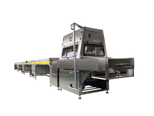 Esta línea de producción soporta chocolate negro, chocolate con leche y chocolate compuesto, con sistemas opcionales de pulido y enfriamiento para lograr un acabado brillante y de primera calidad.