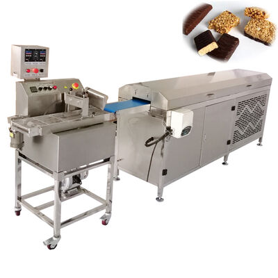 Small Commercial tunnel cooling chocolate enrobing machine consists of small chocolate enrober and 3P Chocolate cooling tunnel. The Commercial type chocolate enrobing machine with cooling tunnel is designed for making chocolate coated products, such as protein bar, energy bar, cereal bar, granola bars, energy ball, date ball, truffles, cookies, biscuits, crackers, pies, cakes, breads, wafer sticks, egg rolls, fruits, nuts, candy bars, donuts and so on.
