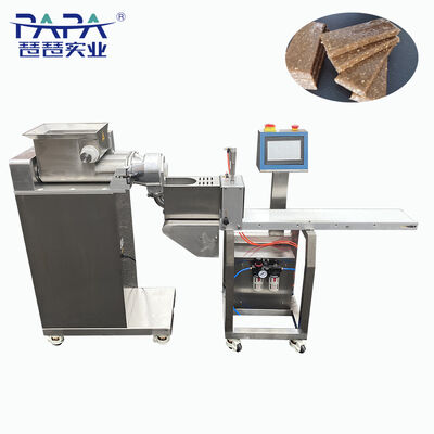 Protein Bar extruder is a upgrade type which is more suitable for making various bars cookies like date bars, energy bars, fruit bars, protein bars, chocolate bars, vegan bars, Cereal bar, Muesli bars, Nutritious bars, snack bars and so on. The bar Extruder and the cutter are independent and controlled by PLC touch panel, so it is easy for operating and working in stable condition. Protein Bar extruder is our new designed extruder machines specially for making hard dough or sticky dough bars. The horizontal protein bar extruder has three extruding screw device to guarantee the dough extruded successfully, the horizontal design guarantees the perfect bar shape. The horizontal protein bar extruding machine can adjust the bar length by cutter, and bar width and thickness by change moulds.